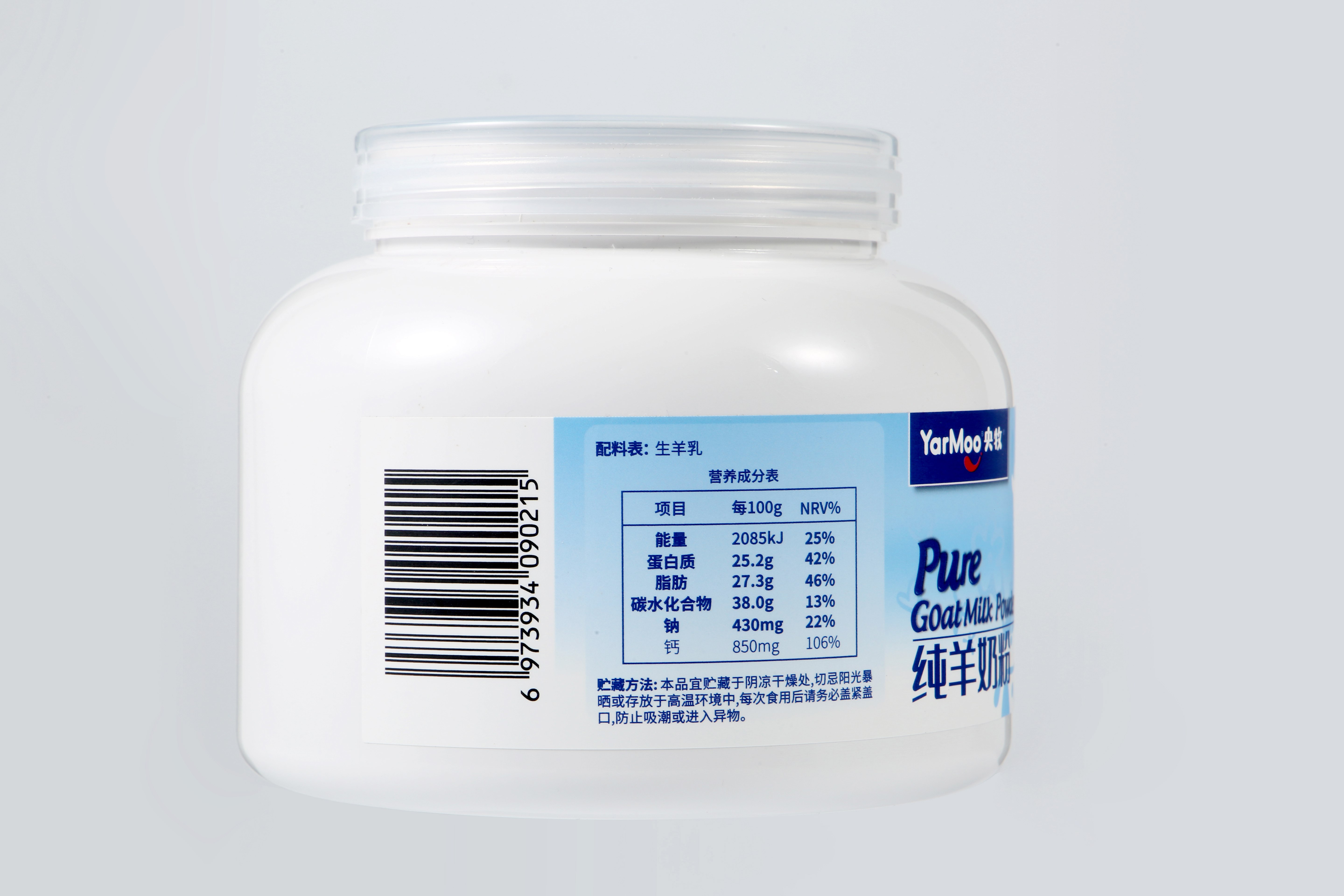 100%生羊乳配方,0蔗糖0添加,含原生A2蛋白(代谢不产致敏肽),乳糖不耐人群友好;小分子结构(吸收率89% vs 牛奶48%)+ 高钙高蛋白(850mg钙/24.2g蛋白 per 100g),105℃杀菌+冷链锁鲜,脱膻工艺保留营养,全年龄段适用。